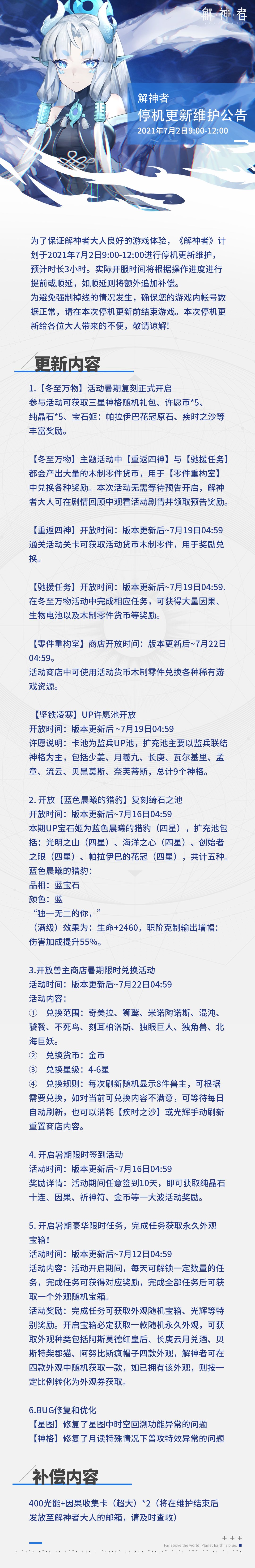 【解神者】7月2日停机更新维护公告