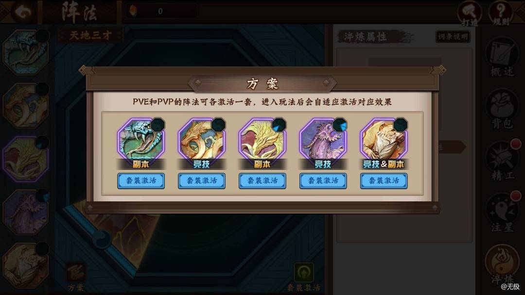 总体套装效果:四门兜底阵法强于双龙出水阵法。