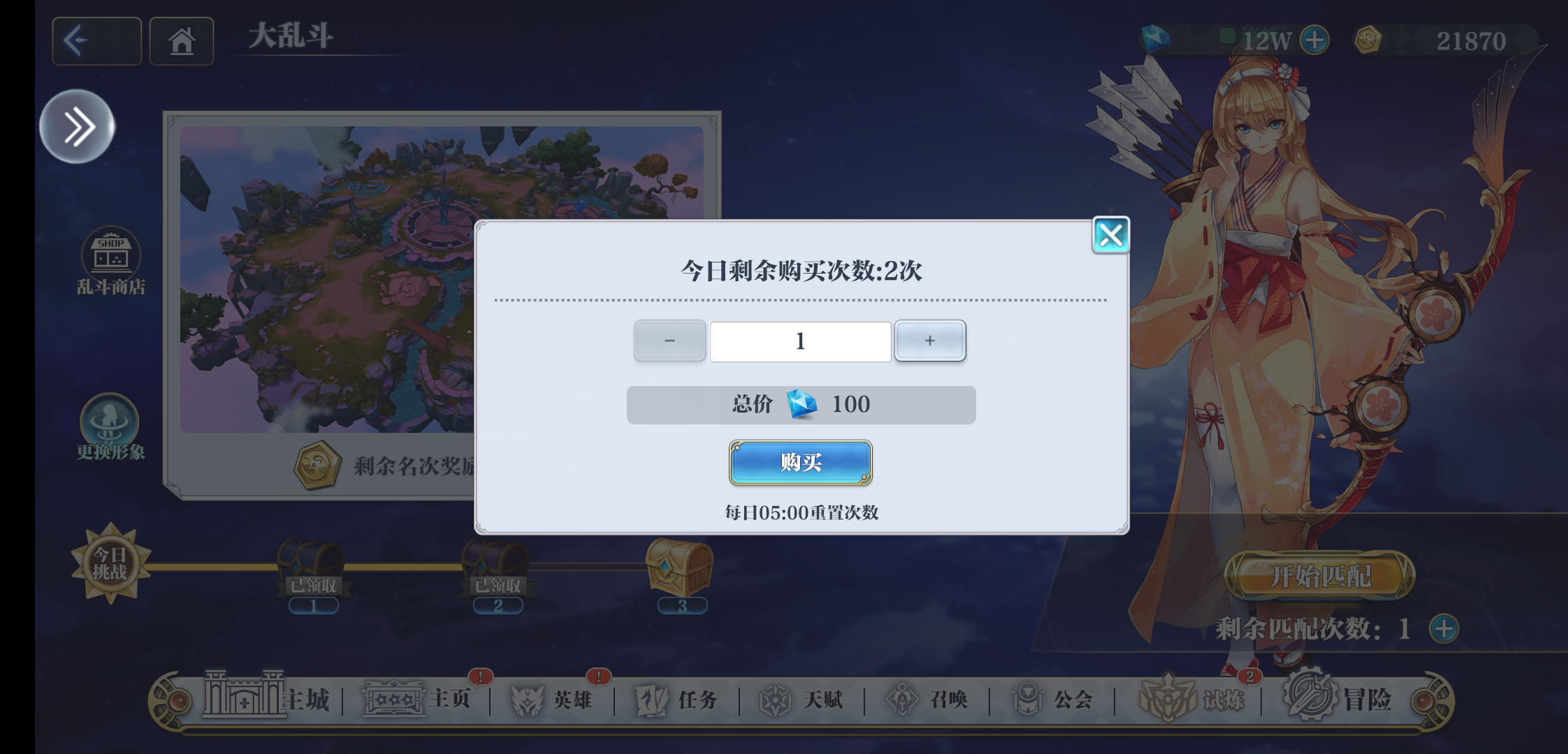 大乱斗进去时一直卡在99好久都进不去,没办法只能退了再进,然后奖励次数就少了一次