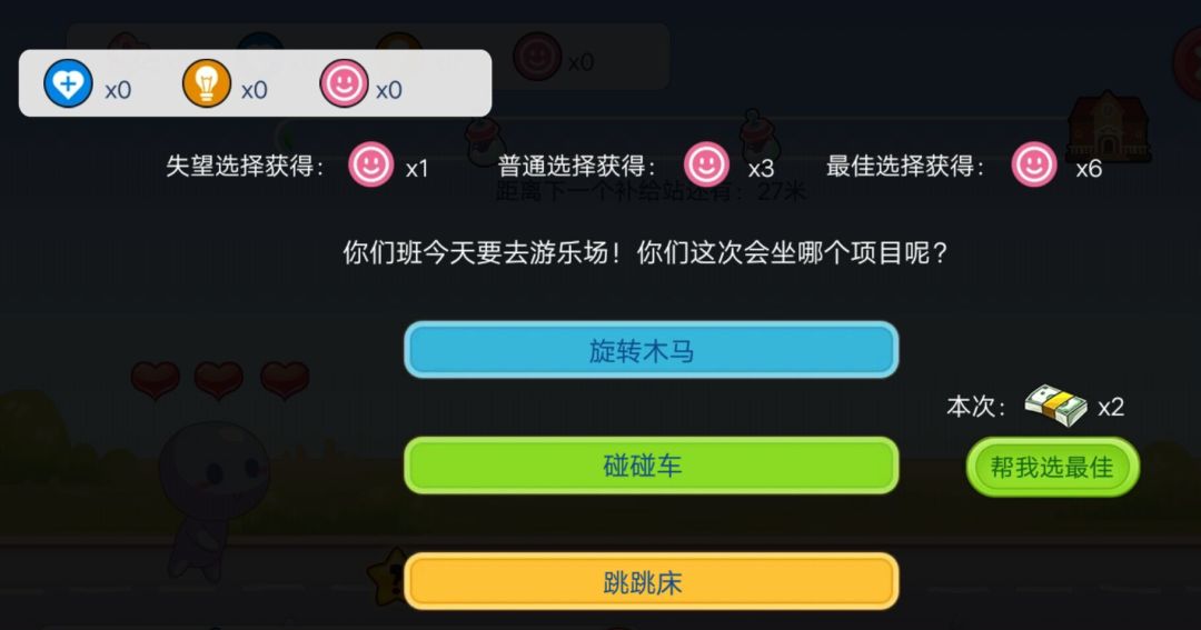 在路上可能遇到有趣的事件,进行选择,收获属性值~