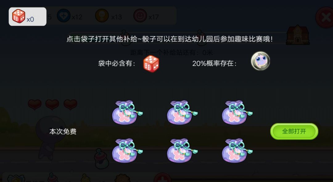 到达补给站后,可以获取饼干或宝宝奶的补给,之后还可以领取其他补给,这里收获的骰子可以在到达幼儿园后参与趣味比赛~
