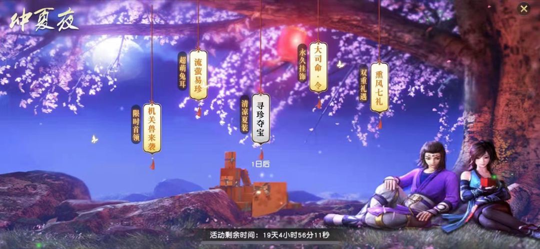 仲夏夜主题活动开启!寻珍夺宝即将来袭;流萤易珍、机关兽来袭多种活动等你参与;更有熏风七礼双重礼遇等你多个玩法,参与即可获得丰厚奖励,还有机会获得“大司命·令”永久挂饰,少侠们记得前去参与活动哦~