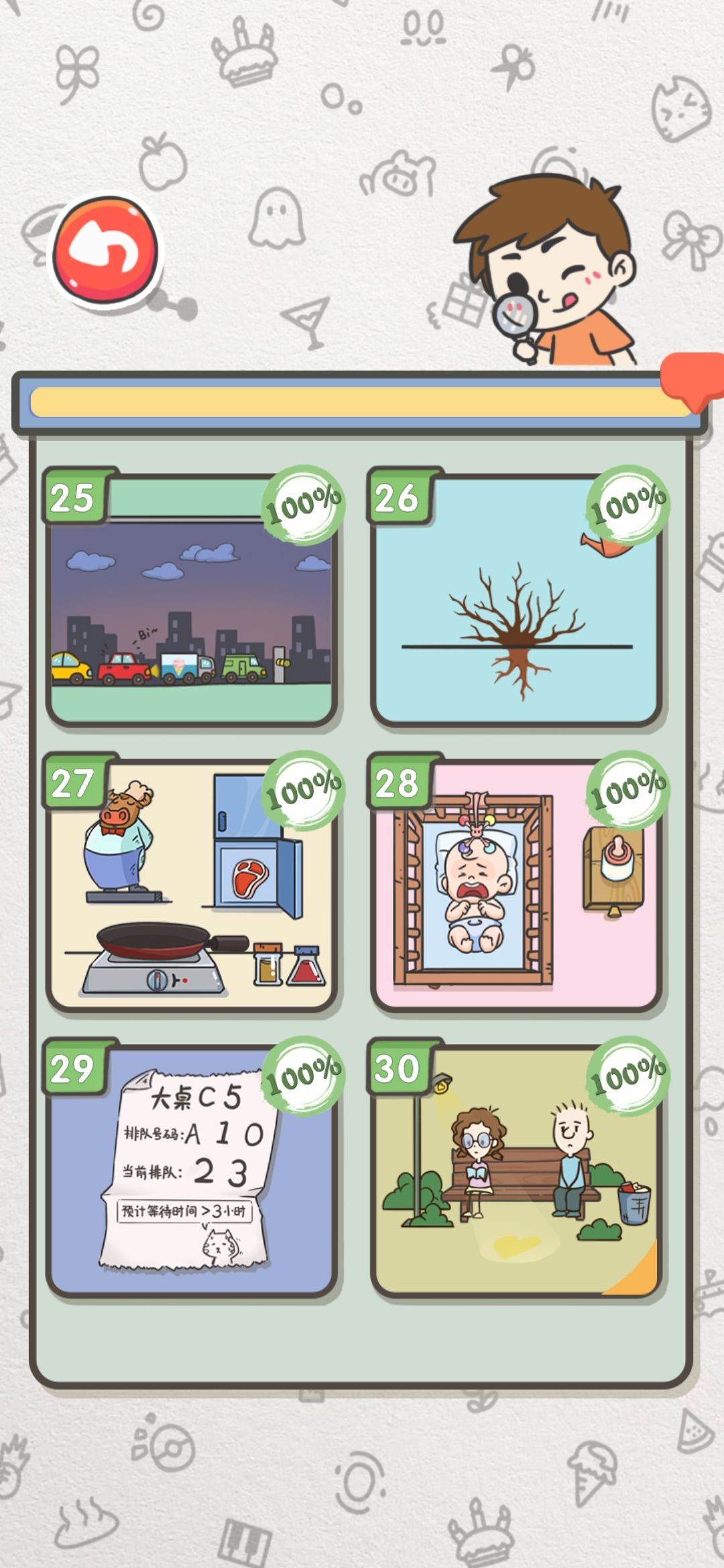 全成就全关卡通过,怎么说呢,可玩性还挺高的,脑洞清奇,而且每一关过了之后的过关话语,有一种蜜汁劝解的感觉,有点东西。