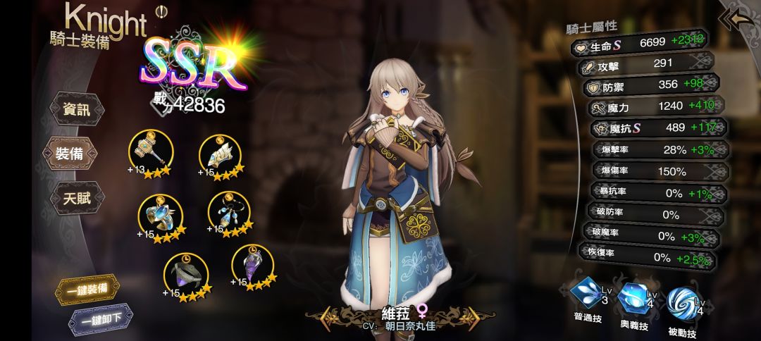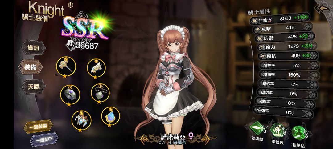 t0女仆辅助,开局冲能,加暴击加爆伤,很容易白嫖6星,必练,不需要过多资源。奥义和被动技能3级就行。法伤