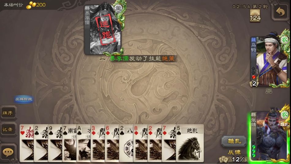 其次才是看位置刷防御或输出,靠前置位就刷输出牌,后置位就刷防御(李儒的技能都要在回合内使用,包括【决策】)所以怕乐怕被翻面,无邪也最好是黑色的,反正李儒刷的锦囊以黑色的为优。