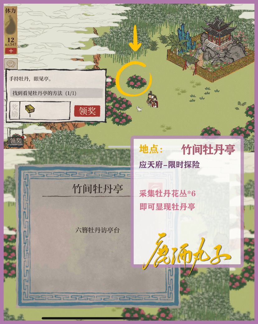 ⭐️采集[牡丹花丛*6]即可显现牡丹亭