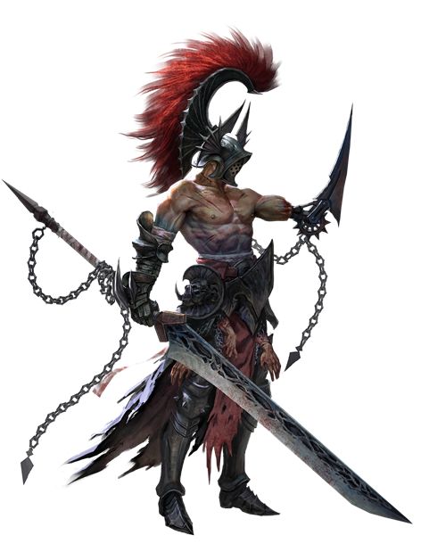 双手握持近3米的巨大棹刀,刀刃有近1米长。这种异形兵器可以如枪阵般迎敌,更极具破坏力。背誓处刑人不再受到神明庇佑,他们的余生只为将敌人斩与马下。