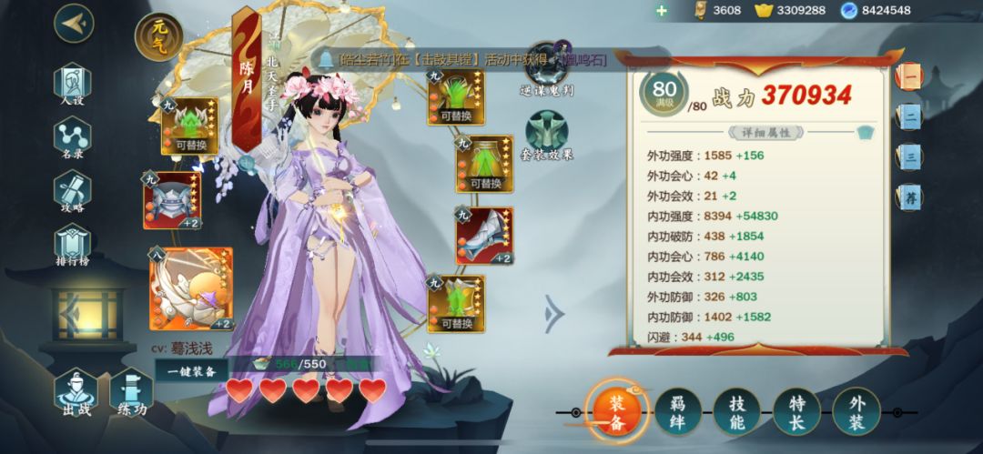 全攻战主堆内强,强度建议53000以上,破防1800,会心3500-4000,会效2000-2500;防御孔打防孔打外防,御孔打内劲上限,外防1000以上,气血120000以上。
