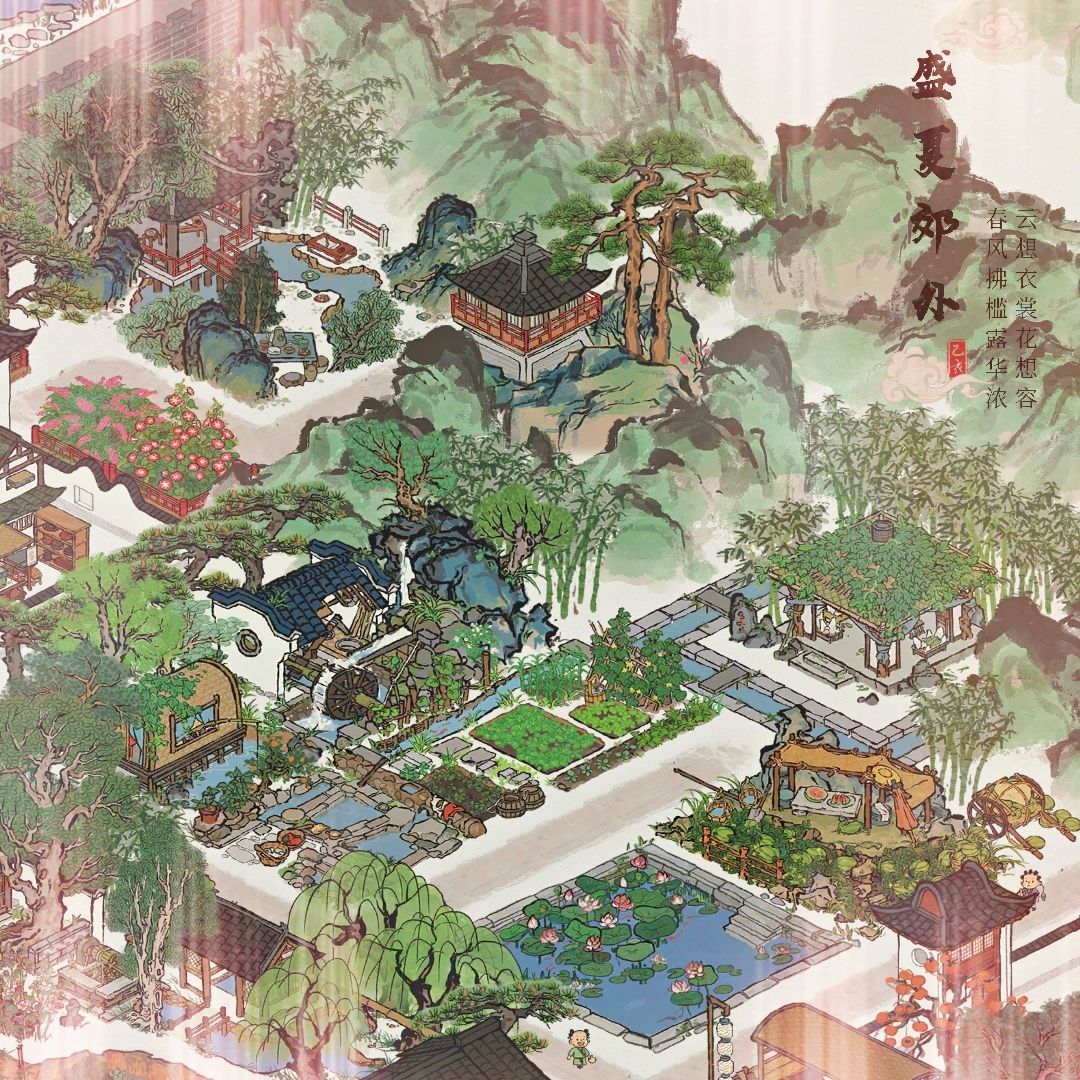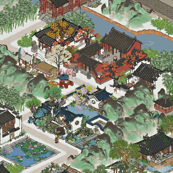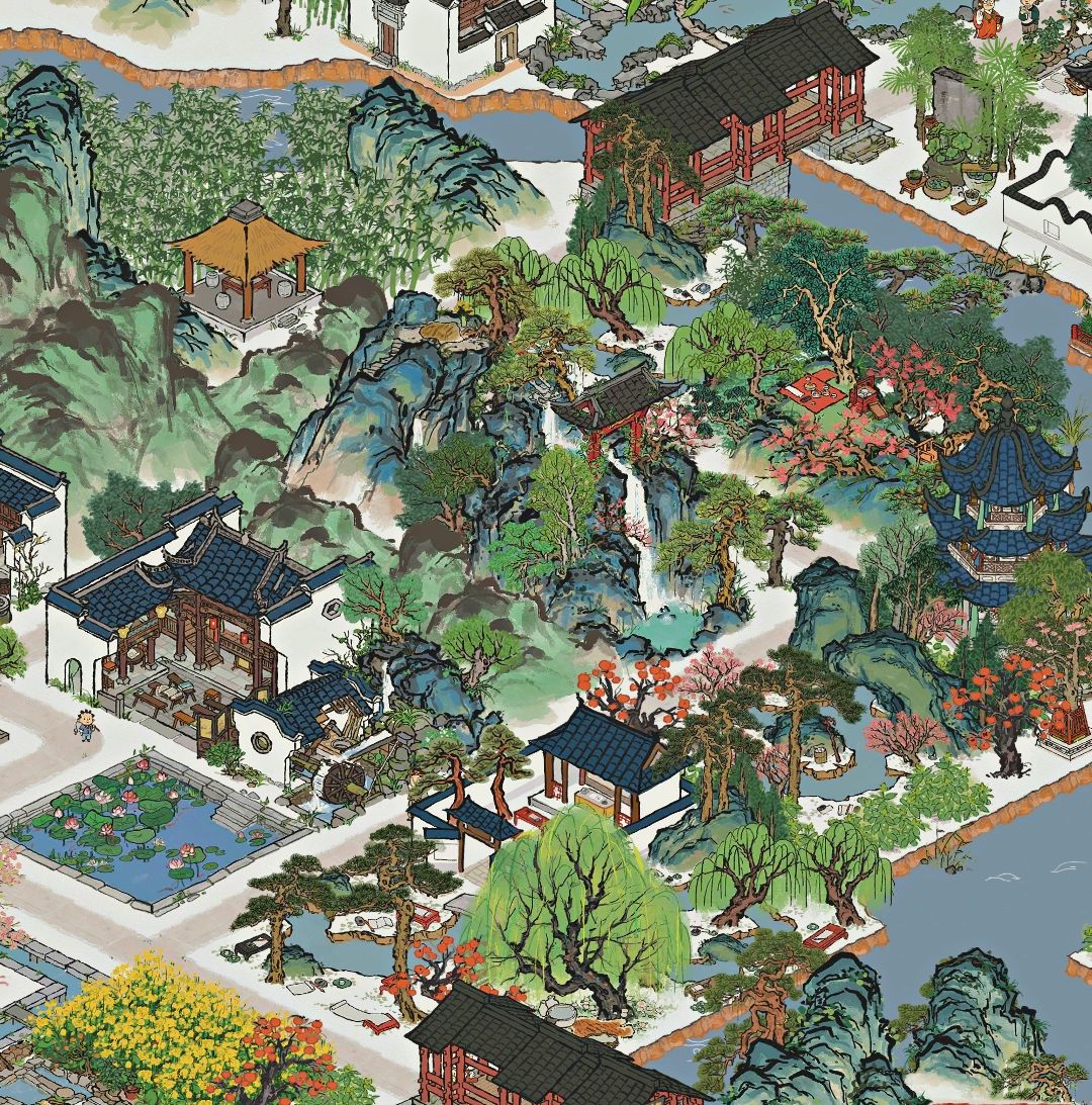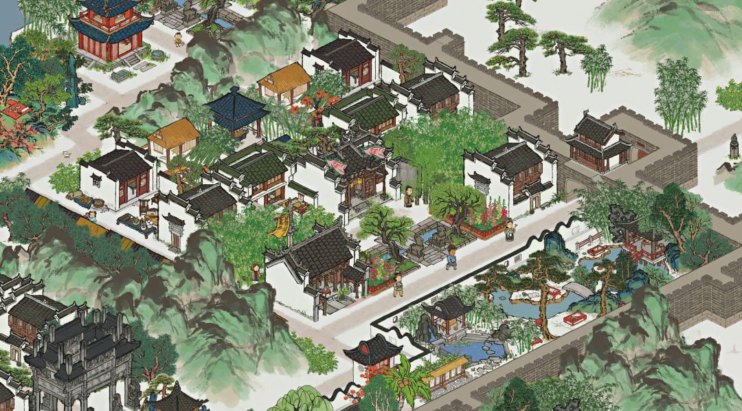 这里用到的建筑都是稀有建筑,思路是蜿蜒曲折,有层次感!为闲人集中建造住所!