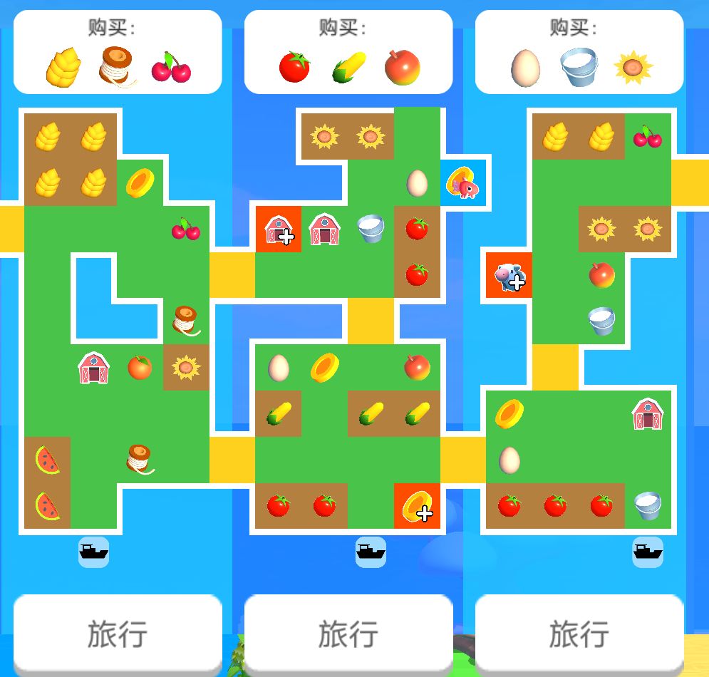 前期不要往上造桥,没地皮走不到对岸。新开别的区域不会继承上一个区域的金币和水果,只会带猫狗效果过去。
