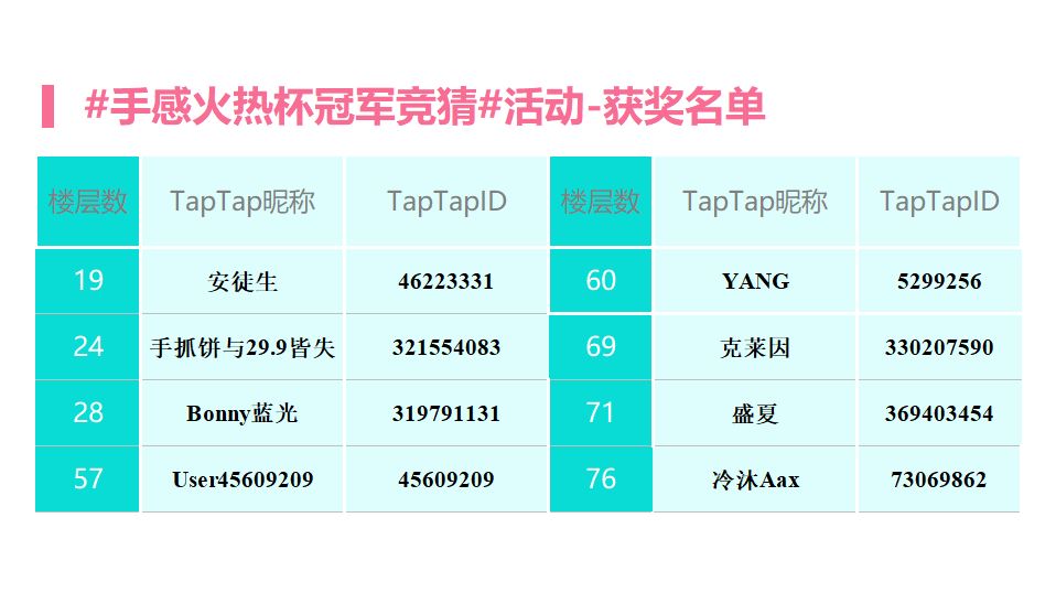 感谢各位选手的积极参与!手感火热杯冠军竞猜活动已成功落幕~