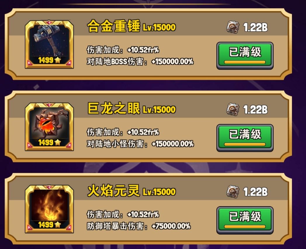 第三个以后就是主什么塔就升级什么,以此类推后面每一个都提升主塔伤害的文物