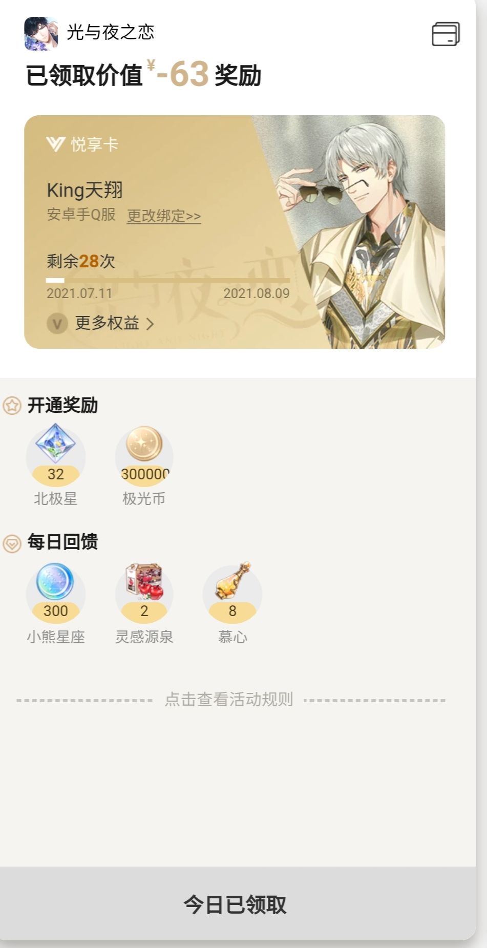 25.下载''心悦俱乐部'',可以在里面购买光夜悦享卡(相当于伪月卡),奖励还不错,但是不计入累充。