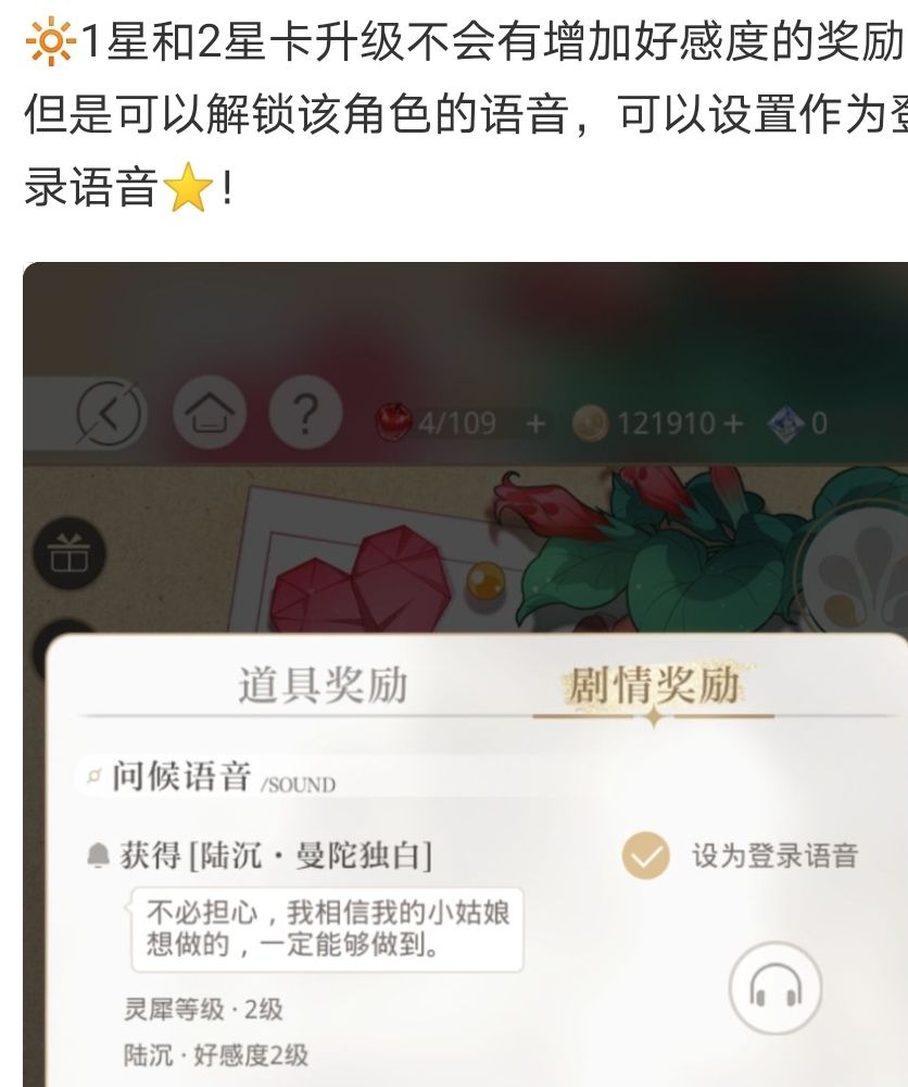 7.几张卡都需要练,满足上述优先级的时候,优先练符合这次属性的,其次优先练高强度卡占比多的角色的卡(比如你已经有两740的六星满练度,你再练个740,上场选祝福的时候就可以优先选740全属性增加的祝福)