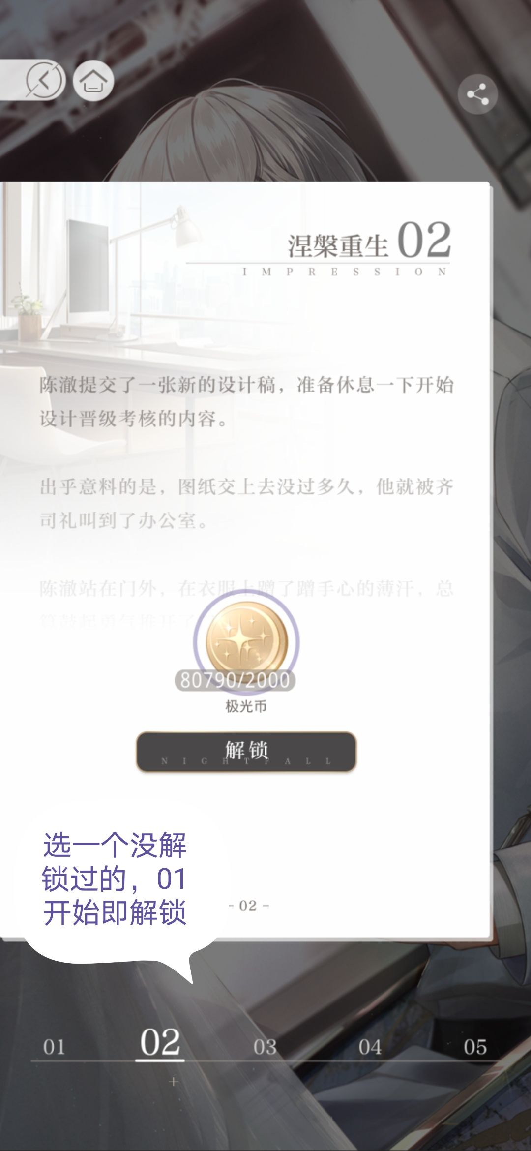 幕后故事里选择任何一个带有纸张标识的,点进去之后找到没解锁的内容,花2000金币解锁