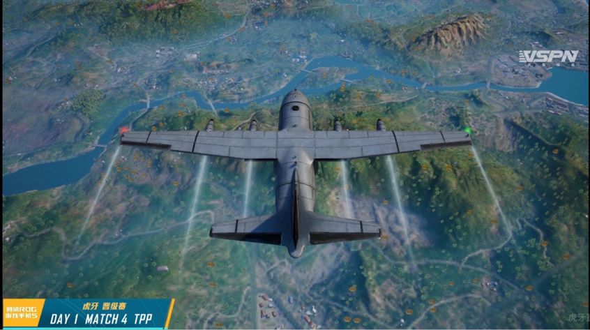 第四场比赛为今天最后一场海岛地图,航线从北向南从S城飞往军事基地附近海域。