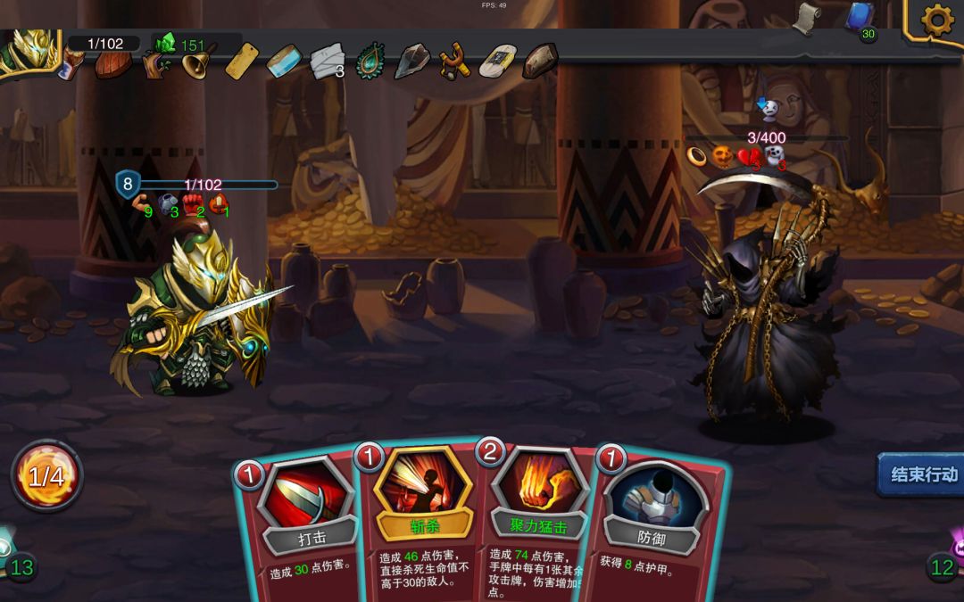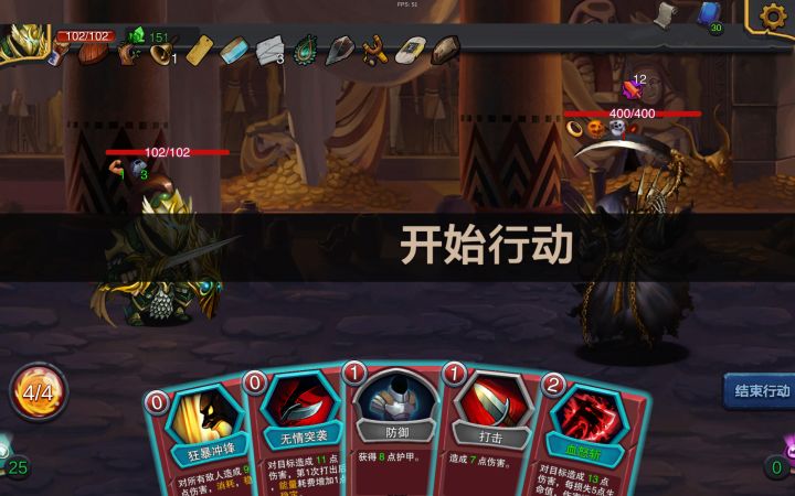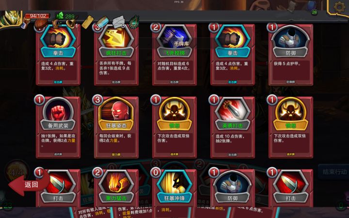 下面俩图是打boss之前的牌组,还有一张升级过的血怒斩。