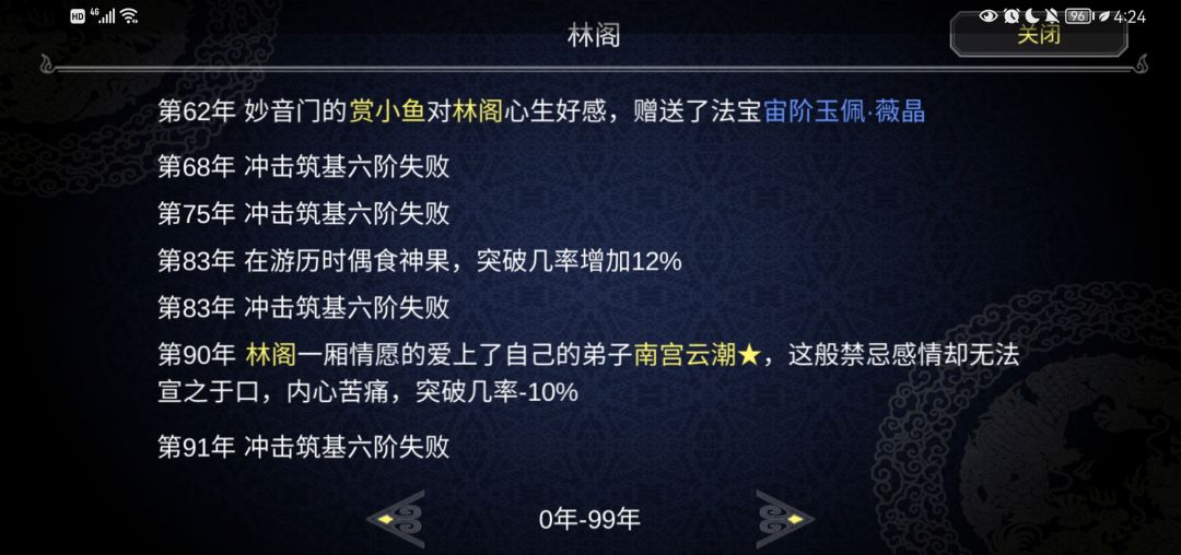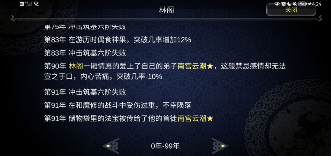 冬去春来,一晃又过去了六十余载 这段时间里也有其他宗门的女修士向宗主表过爱意,可他却对南宫的感情越来越深。终于,在无法吐露心声的第九十一年。林阁心中痛苦不堪又被魔修袭击不幸重伤陨落,在最后清醒的那段时间里看着眼前不断哭泣的南宫云潮,他终于明白了。自己不是独自爱慕而是互生情愫却不自知,他带着笑离开了。曾经那个修炼马马虎虎也能和宗主并肩,突破经常不该失败也失败的首席弟子失去了笑容。