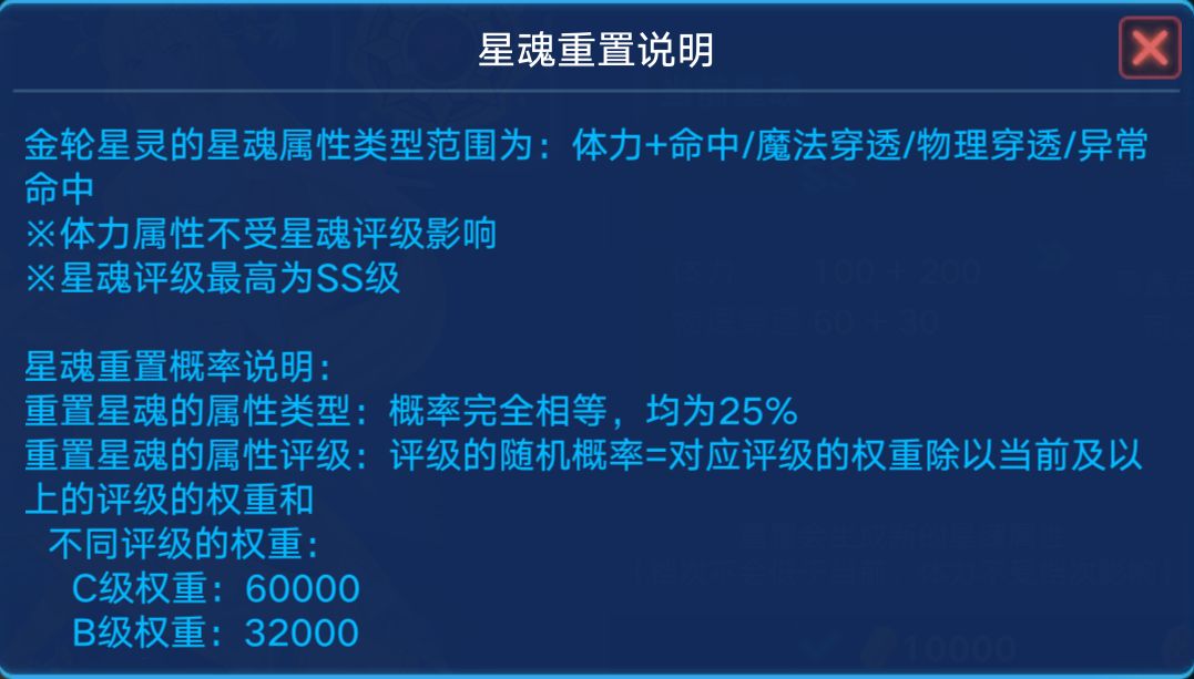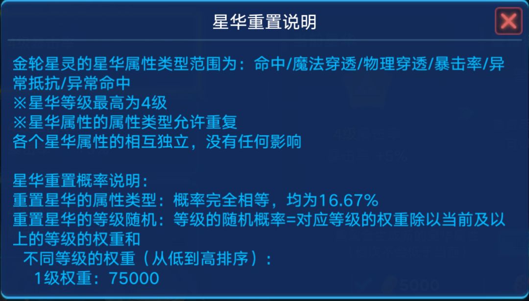 ③重置方法:当你重置的时候,遇到高级的星魂/星华,不管是不是你想要的属性,你都要替换。等刷到最高的那一级,再去刷你想要刷的属性。