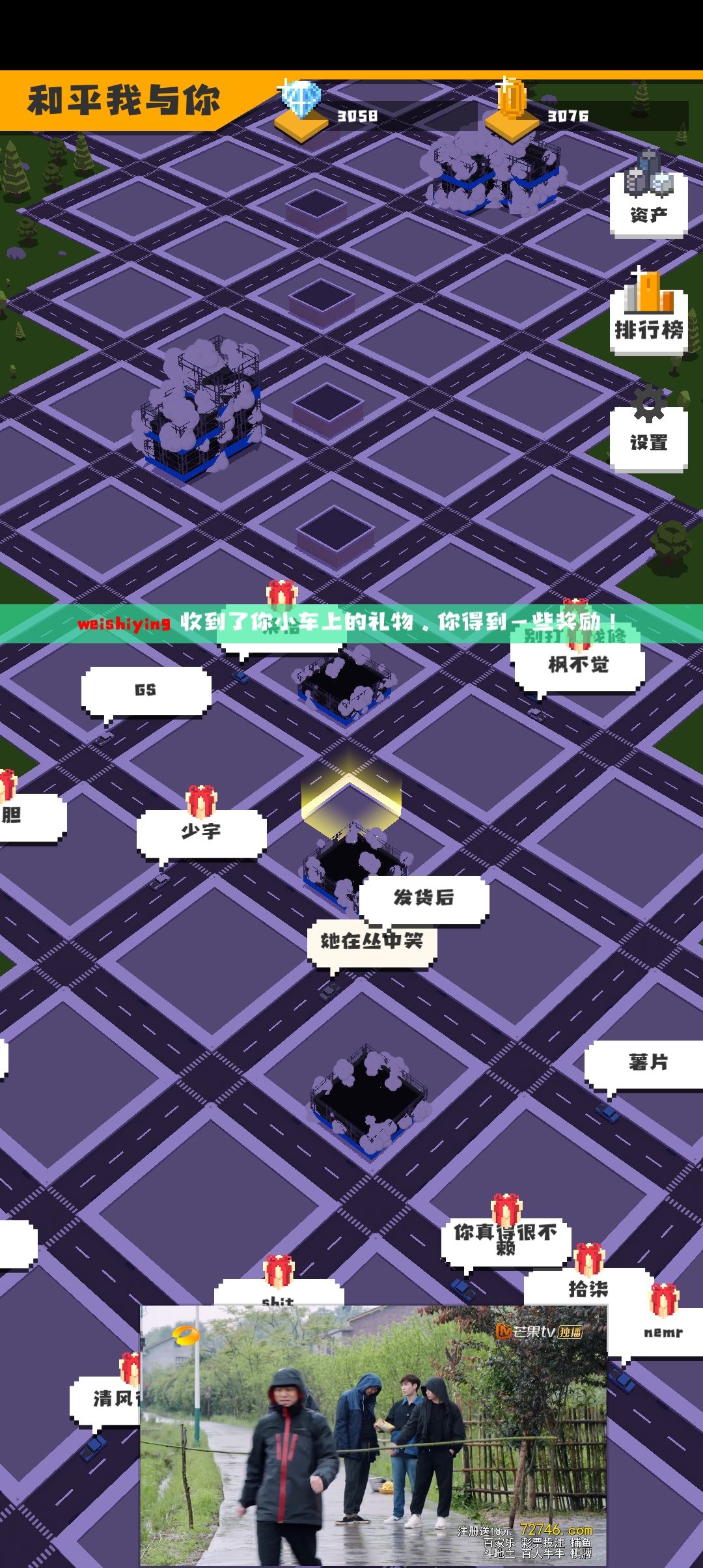 这个地方可以不用转屏幕就能刷。(有个小技巧:第一次点小车礼物然后不要松手直接滑动,像水果忍者一样就很方便)然后可以占一个地方方便刷的时候跳地图。