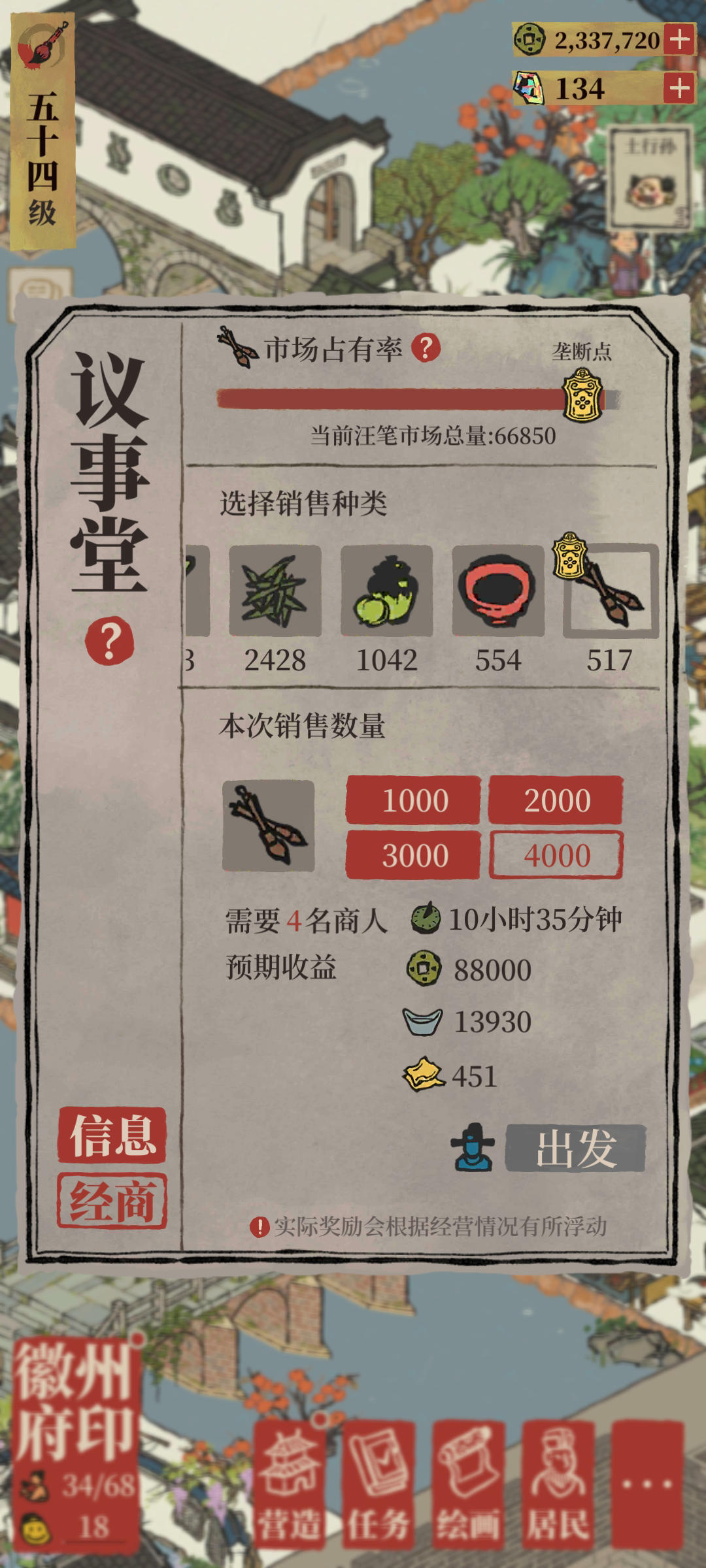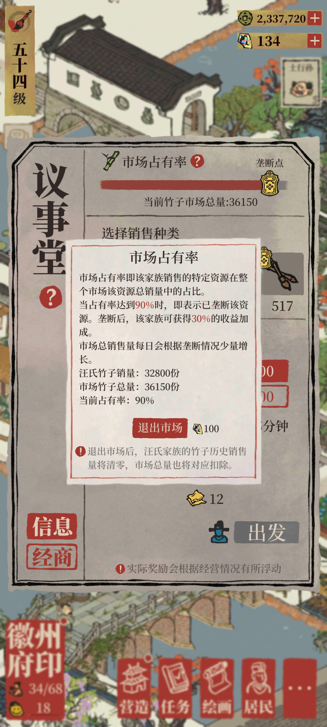 垄断后可销售的物品在金币、银子和金箔上的收益都高了很多。