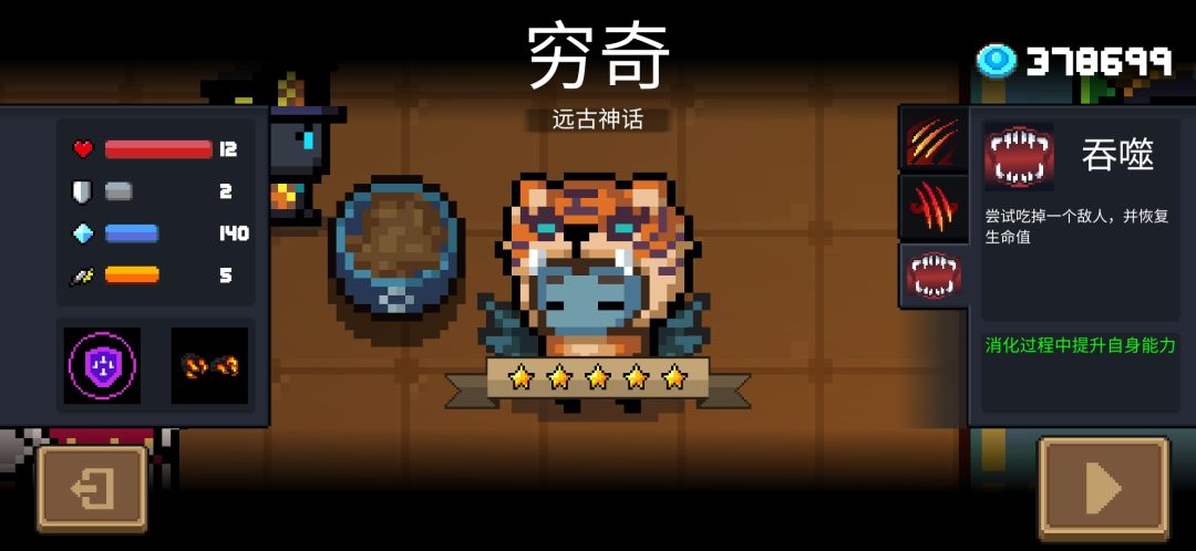 每吞噬一个敌人或者咬中一次boss,技能累计一个层数,最多5层(连击次数增加天赋没用!)