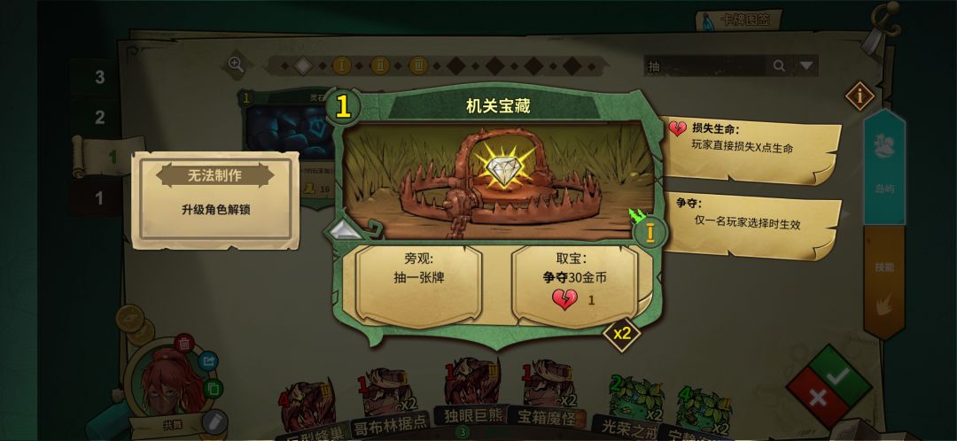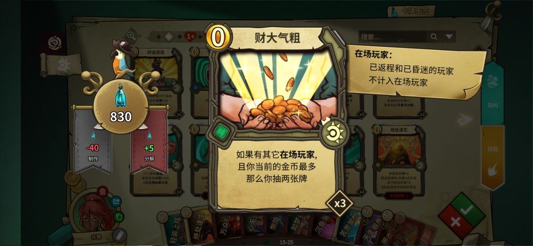 红岛选择很多,分金币的,过牌的,活下来加血的,依然是选择有正面效果的,注意你在有共舞时分不到金币,过牌或者尽可能别掉血就行了。