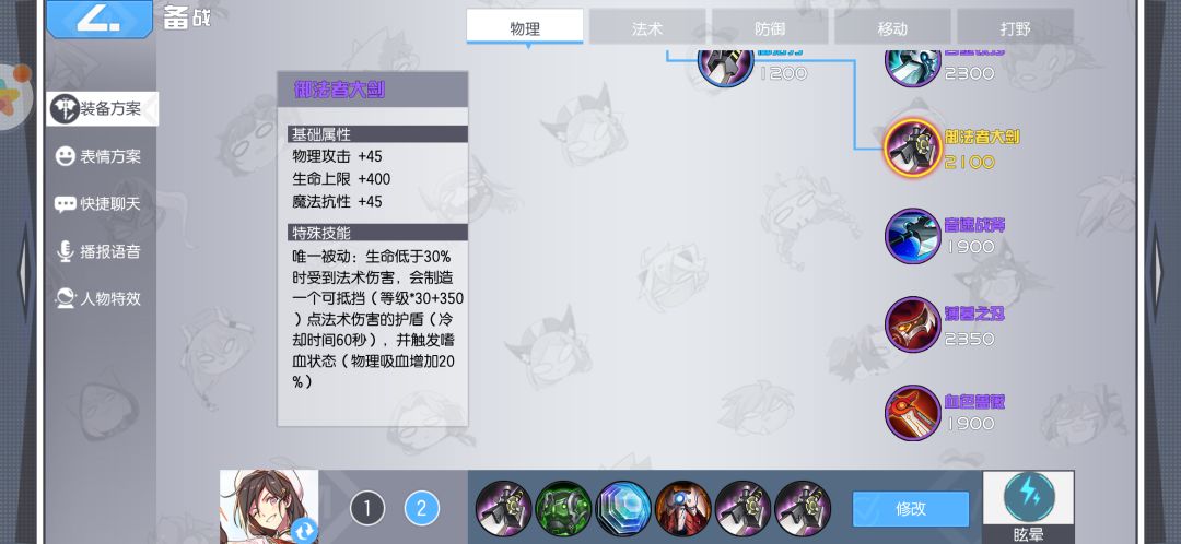 上图是正常情况下的坦装,不出大鞋子。可以看到,首先御法者大剑自从改版之后真的是件好东西。枯萎之心可以提高近身能力并增加冷却,之后的坦装看情况出就好了,只要你不出烧甲,我们都还可以好好说话。