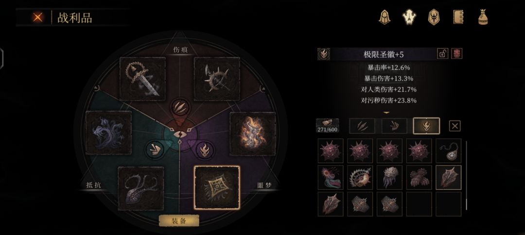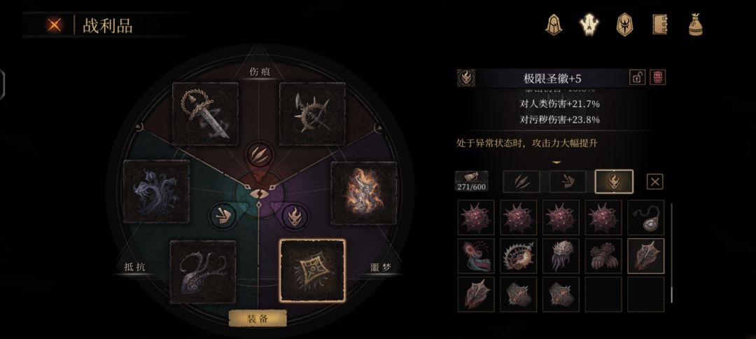 ps:伤痕栏,不加攻击的就没啥用,噩梦栏,不是极限圣辉都不强。抵抗看着装