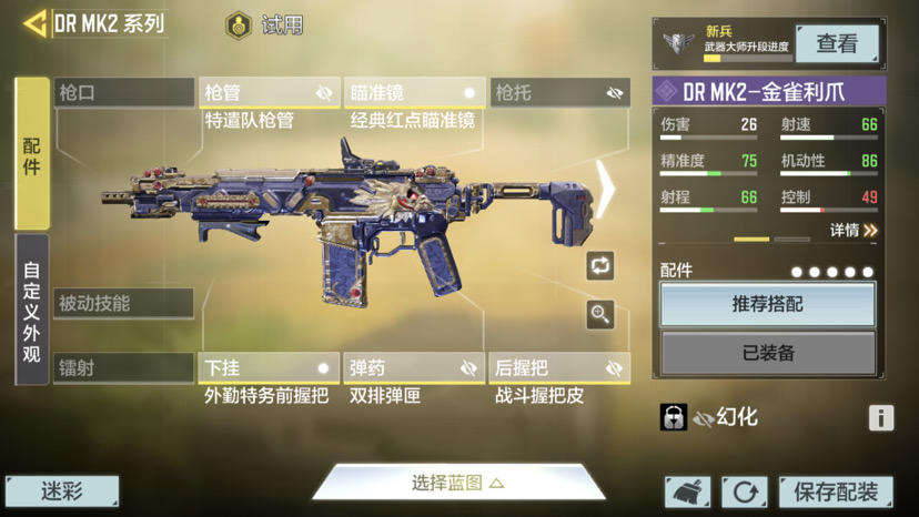 3.DR MK2 这把枪刚出时非常强势,但现在回到了一个正常的水平线上,加了速射枪管后7米内可以三枪倒,但要全部打中胸部,如果一发子弹偏了就会打出99,理论上是TTK最短的枪(除狙击枪和喷子),但弹道不好控制,很容易飘,所以一般来讲都是四枪死,而且装了速射枪管导致射程很低,稍微远一点就变成了6枪死。