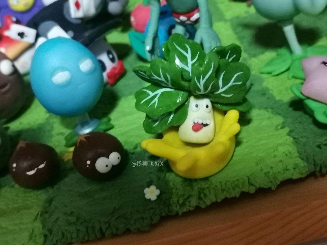 本来是想把这张作为新头像的,无奈头像上传功能正在维护,其实冰冻生菜从我刚学黏土的时候就在反复尝试制作,但是一直没有做出比较好的效果,层叠和不对称的造型要还原出来真的非常难,这次做出来的算是比较满意了,下方冰座的模糊透明感及生菜本体的光泽效果要比以前的效果好很多,制作材料依然是树脂黏土,对黏土PVZ制作感兴趣的小伙伴请一定艾特我