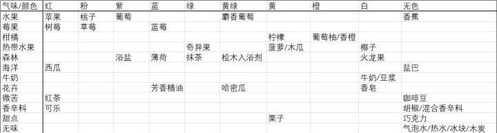 (攻略)不同颜色和香味对应的季节加成