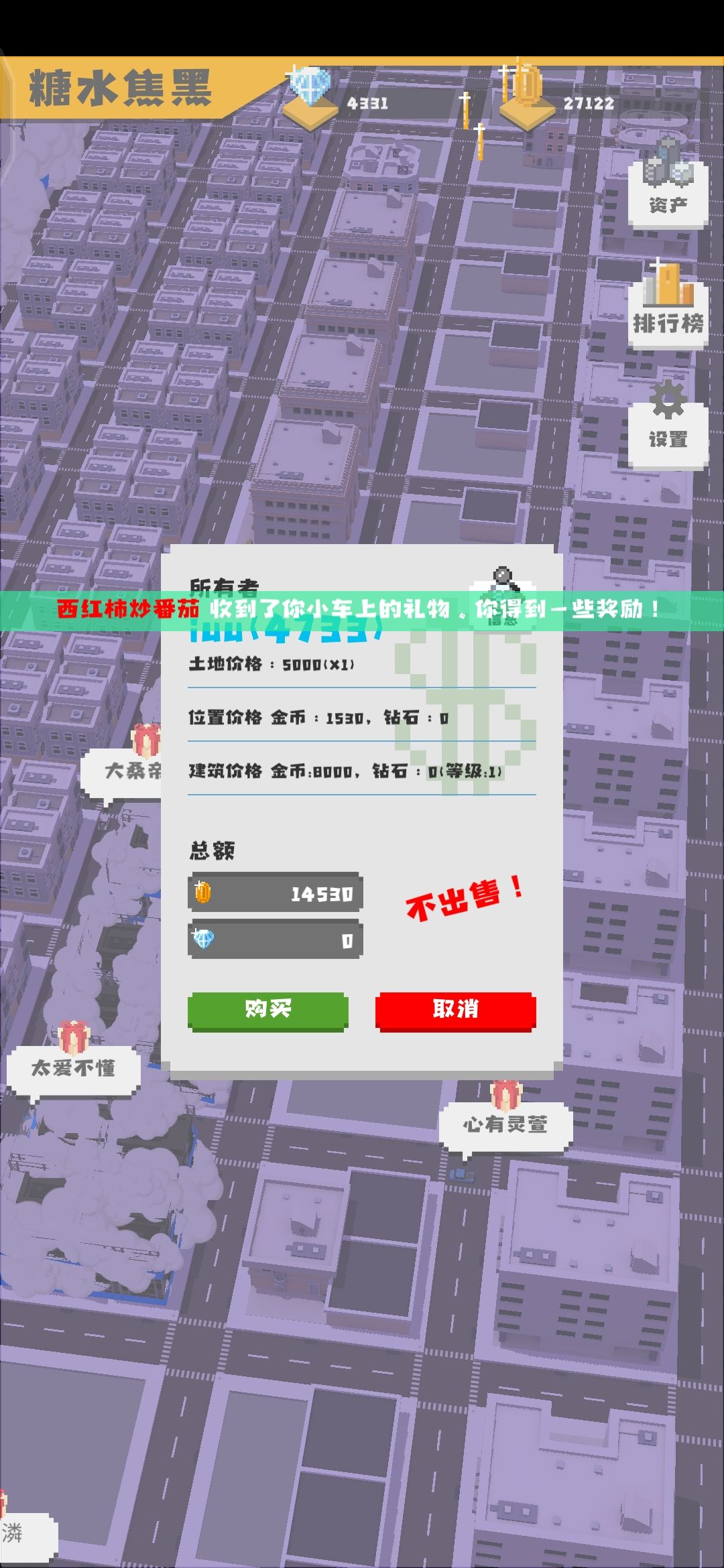 我点小车的时候不小心点错了,买了一块你圈的地皮,实在是抱歉。