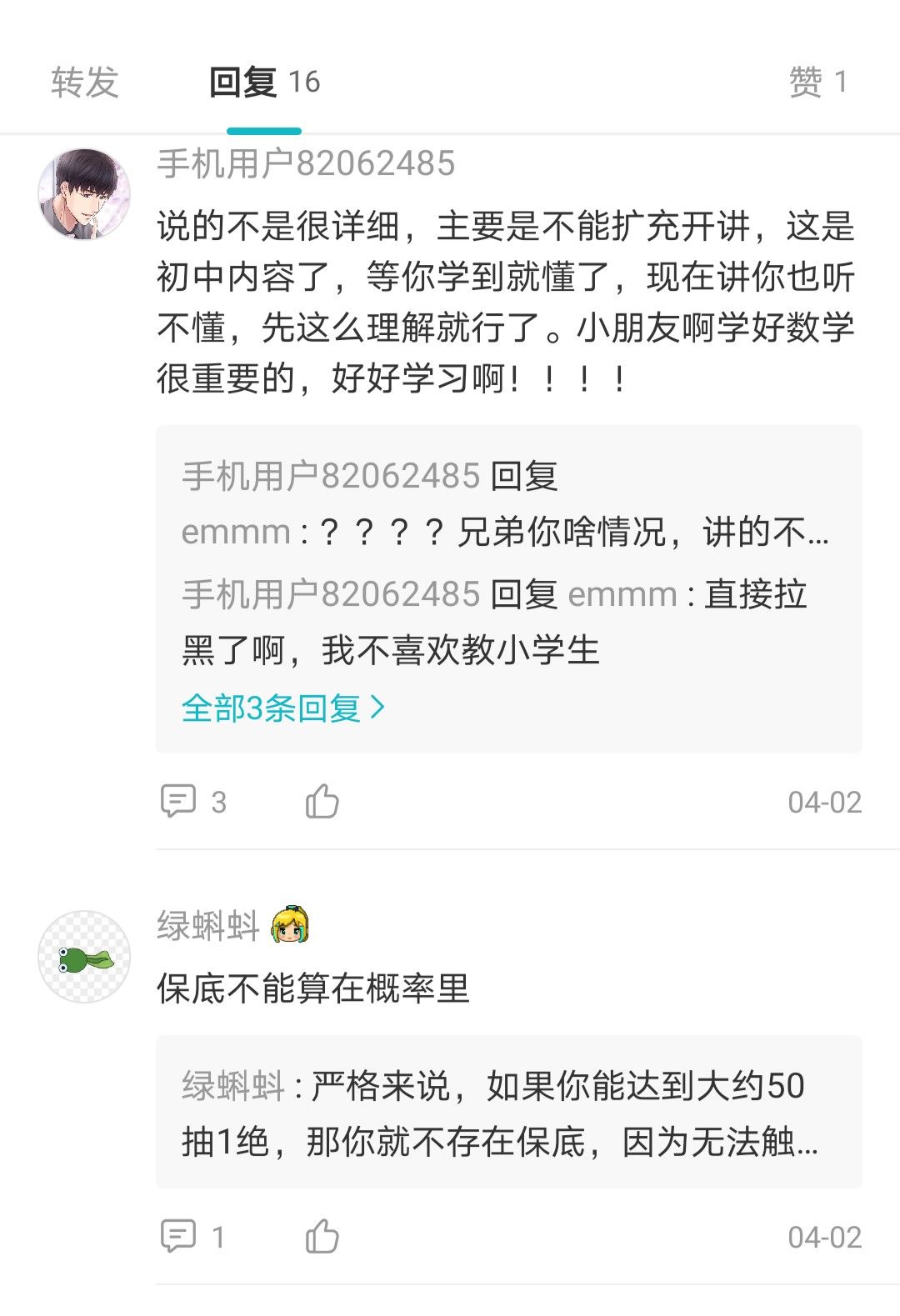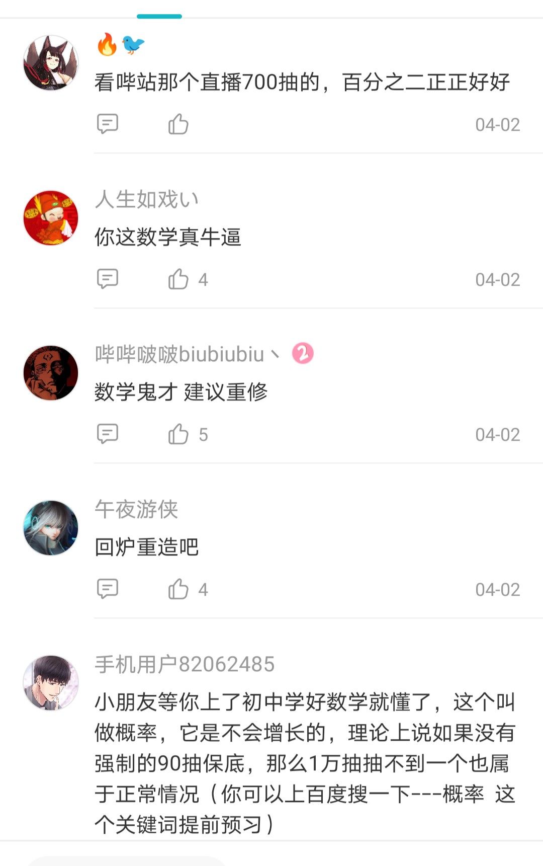 也就是说平均36.9次才出一次绝,其倒数2.71%也就是我想要的综合概率。可能存在什么纰漏或者错,但是我就想说明,考虑这个保底和概率递增后的综合概率怎么都比2%高一截吧。