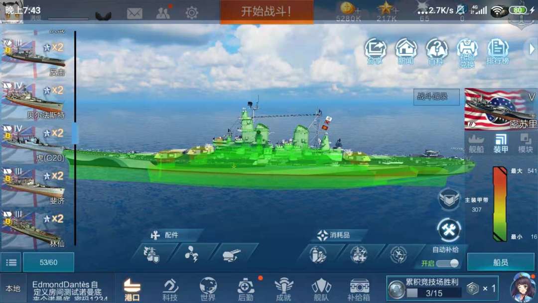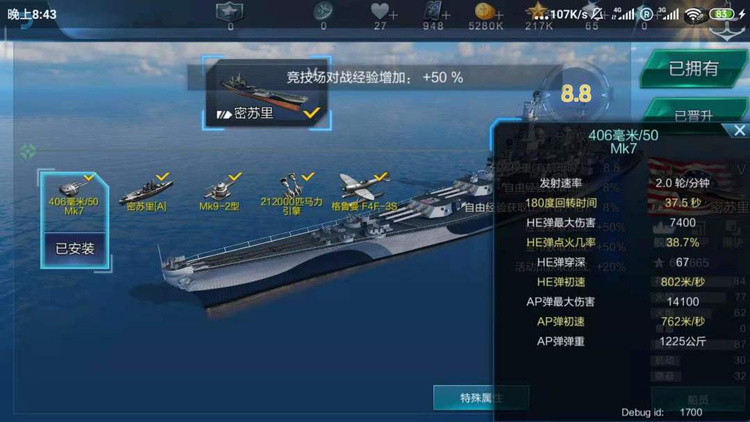 平衡性调整,鉴于该船过于孱弱的生存性和主炮输出,现更改该船主炮为伊利诺伊同款,并提升精度,减小散步圈和SIGMA各10%。