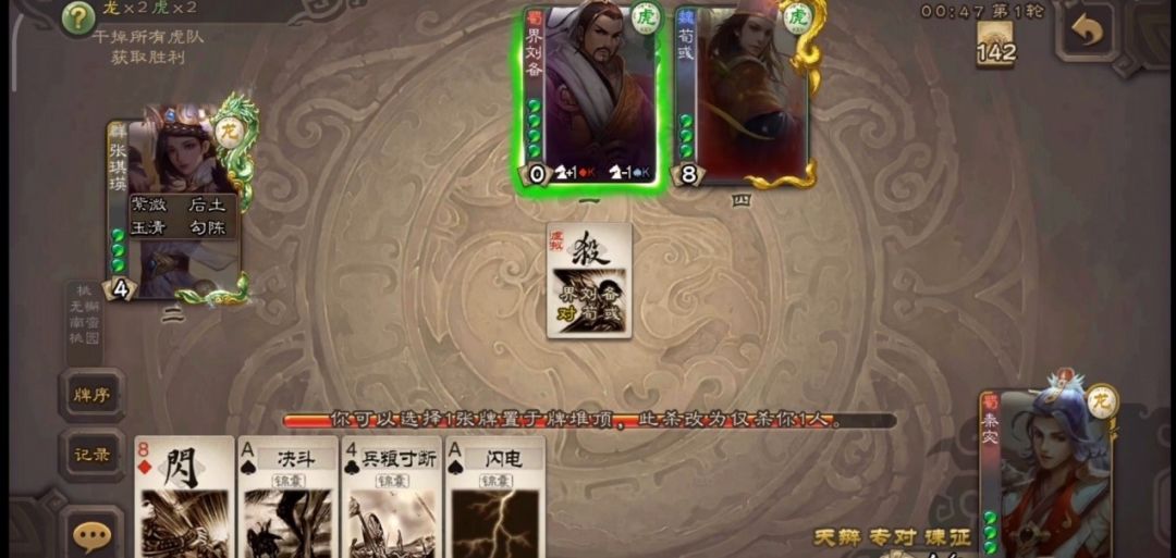 8.在特殊条件下,要尝试击杀或他需要打酒杀和属性杀时,不要吝啬自己的手牌,直接用手里的大点或者红桃牌去拼,别【天辩】!