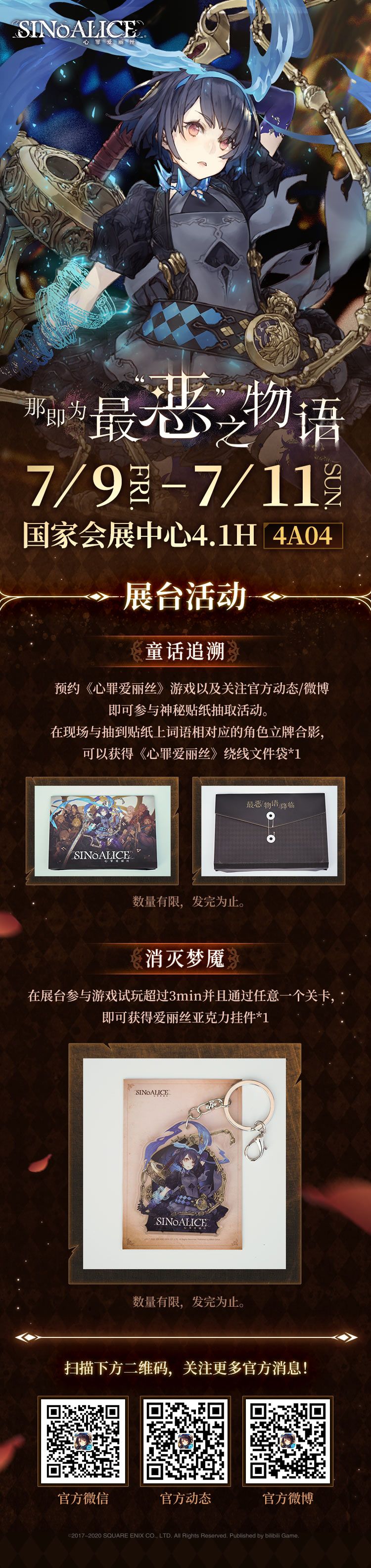 最“恶”之物语再临!7月9日-7月11日,#心罪爱丽丝#将参展上海#BW2021#!参与展台活动即有机会获得精美周边。欢迎小伙伴们前往国家会展中心(上海)《心罪爱丽丝》展台#通关bilibili游戏梦境#!
