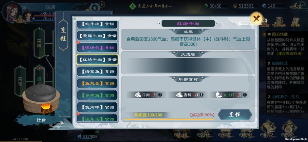 (补充一点:红烩牛肉菜谱的获取方式,在渝谷泰丰楼买炖牛肉食谱,做炖牛肉有概率刷出葱爆牛肉的食谱,葱爆牛肉有几率刷出红烩牛肉的食谱。这个概率会随着熟练度上升而上升,概率还是很大的)