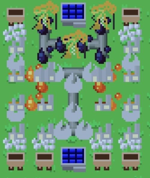 整个模块大概消耗电力272,补充的9个太阳能发电站生产270电力。(-2电力)
