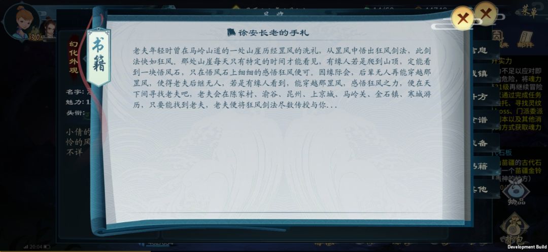 ③找徐安学剑法,会在各个城镇随机出现(我是守株待兔,在马岭关驿站休息,等到他出现为止)