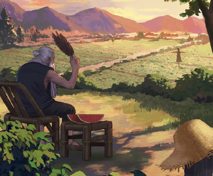 可你还不想走,每天依旧装作若无其事地出现在老人周围,你也不知为何,也许是因为夏天还没过去,瓜田里还躺着几只落寞的西瓜,也许,是老人的故事还没讲完。