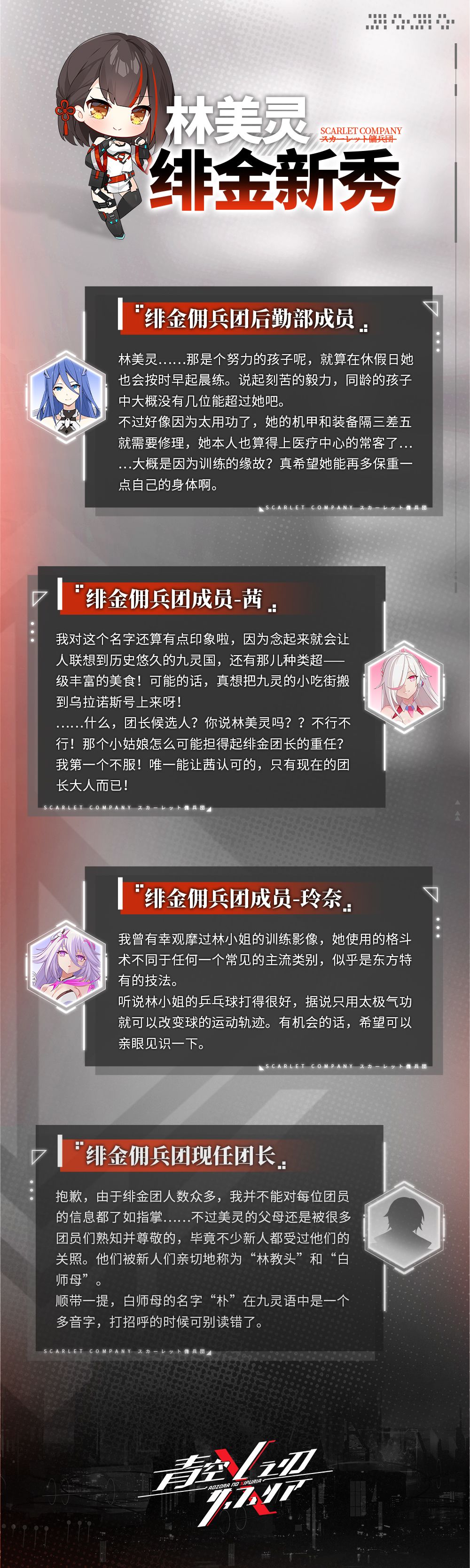 她是生长于绯金佣兵团的“方舟一代”,体内流淌着东方文明古国的血液。即便造化弄人,令她命途多舛,可屡次挫败的打击总能在她百折不挠的毅力和坚定不移的决心下烟消云散。“命数也好、运道也罢,不到如愿以偿之时,我绝不言弃!”