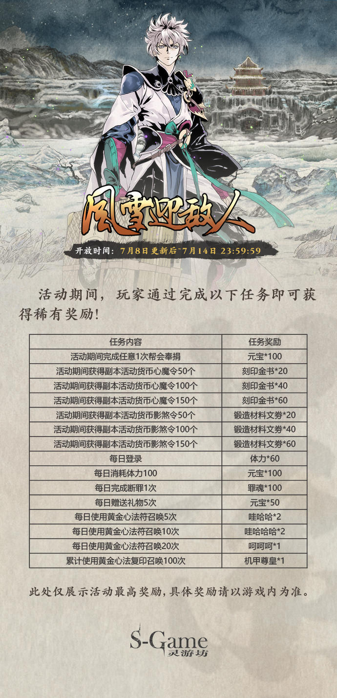 【风雪迎故人】限时活动(7月8日更新后~7月14日 23:59:59)