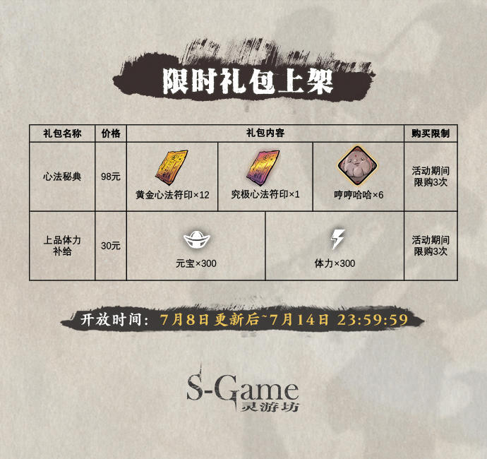限时礼包上架(7月8日更新后~7月14日 23:59:59)