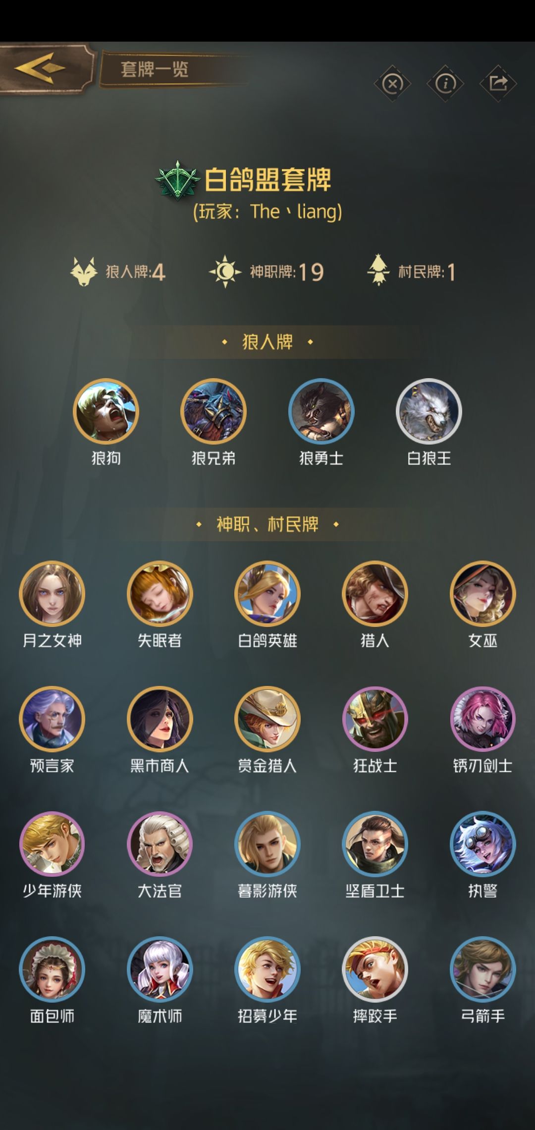 然后我塞了一张意义不明的魔术师,用于增加自爆狼的收益,同时,也能配合赏金猎人,女巫,预言家,换取卡差。
