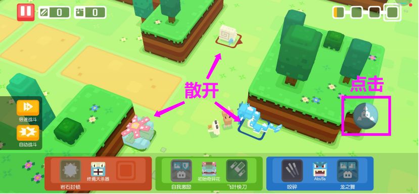 点击回避键:队伍全体散开。轻松简单,萌妹子也能上手!