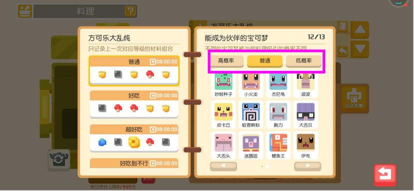 宝可梦稀有度分为:高概率,普通,低概率。