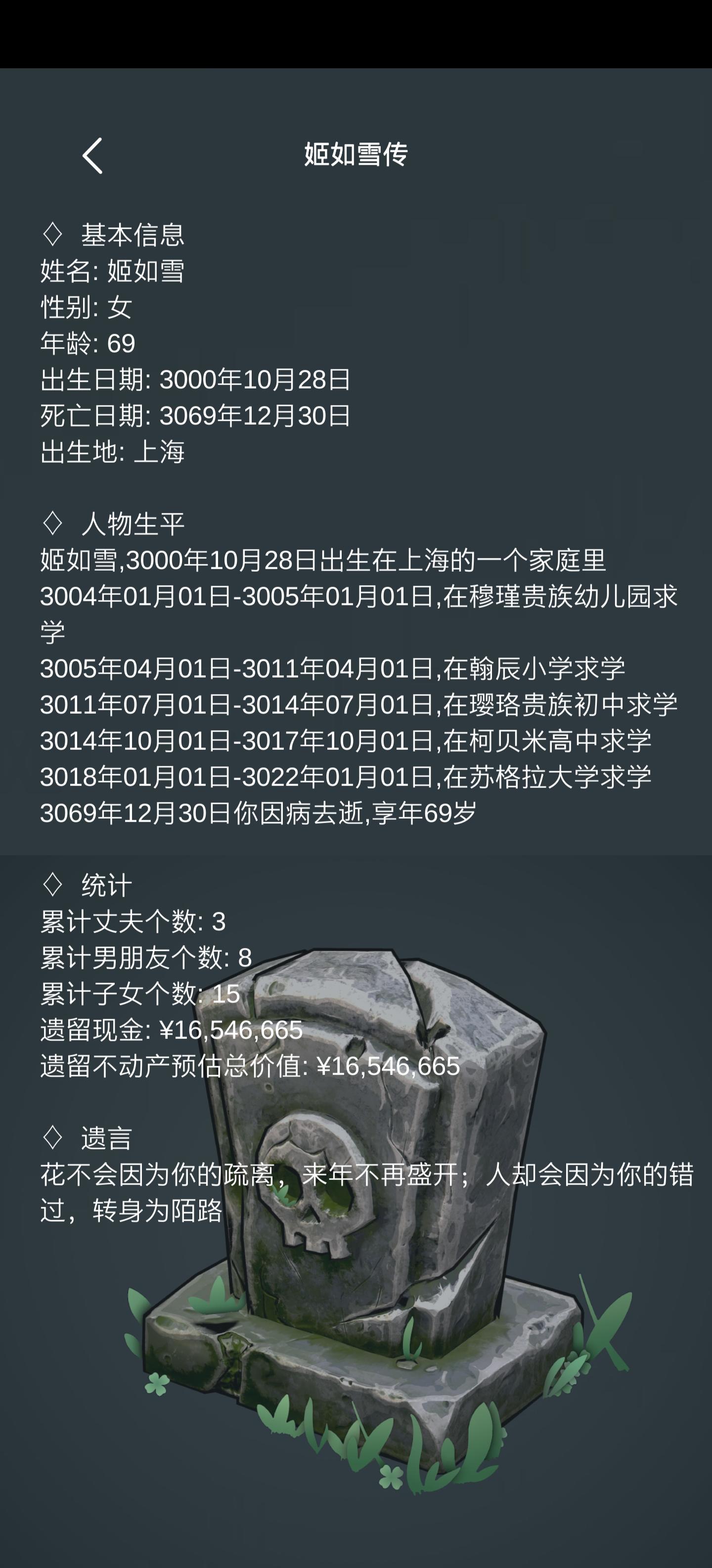第三:死亡后重生bug,一直无法继承子女的人生,或者是重生,退出刷新多次也不行(▼皿▼#),不能继承等于前面白干,出生就是属性平平,后面不断升上来的。