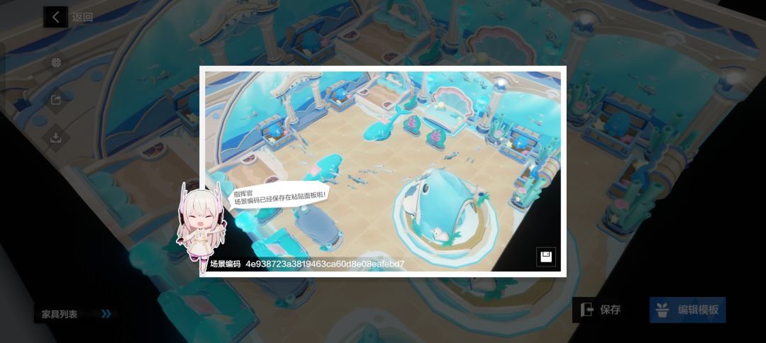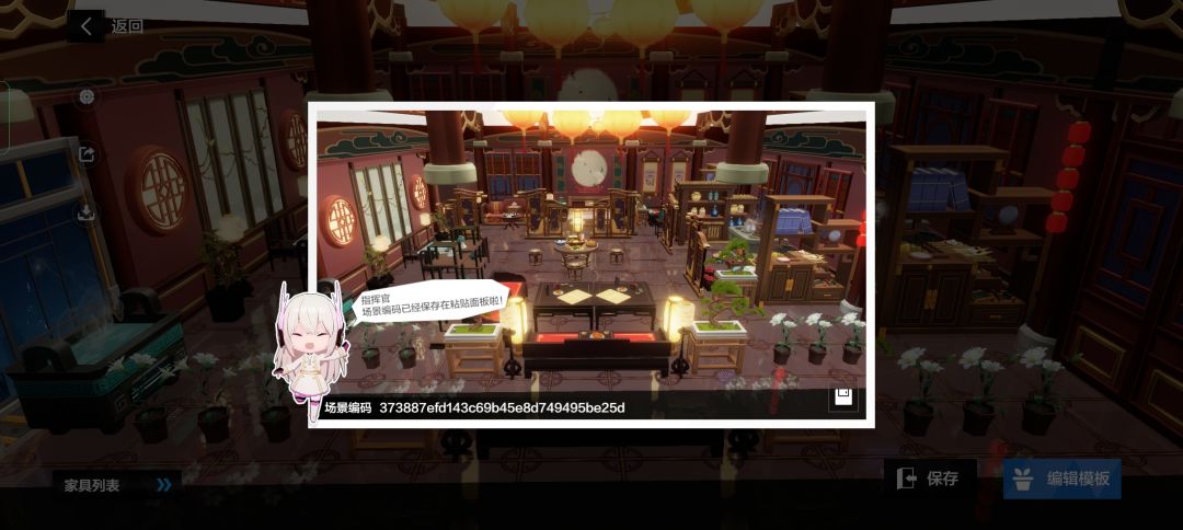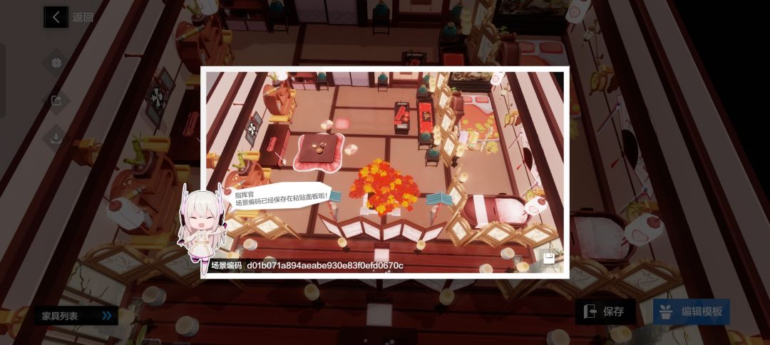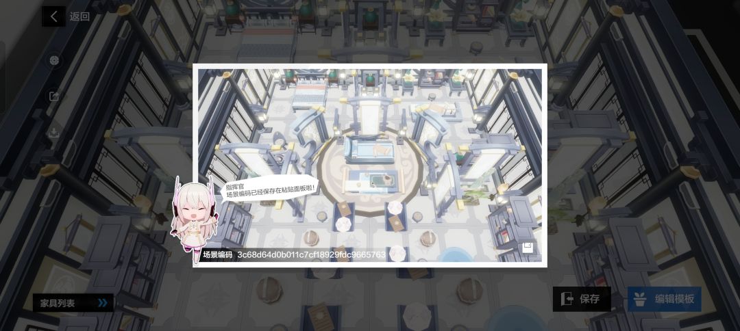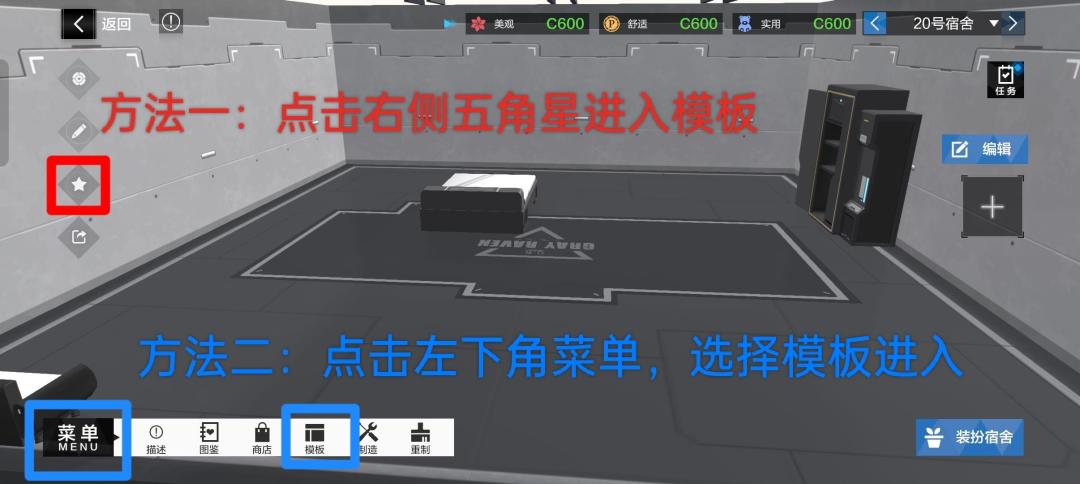 复制编码,打开游戏,点击宿舍,然后随便找间宿舍进入,打开模板(如图,有了两种方式打开模板)