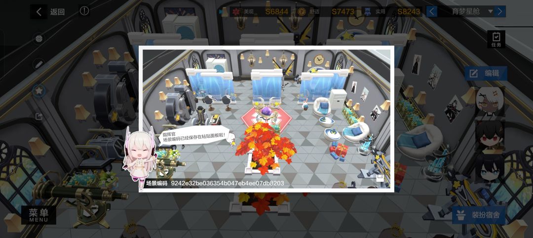 PS2:我所有基础家具为A级,改造家具为S级,因此如果不想刷家具的话,直接使用级别较低的家具可能宿舍整体三维不是高,毕竟我又好几间3a都比较勉强,所以抄时要有心理准备